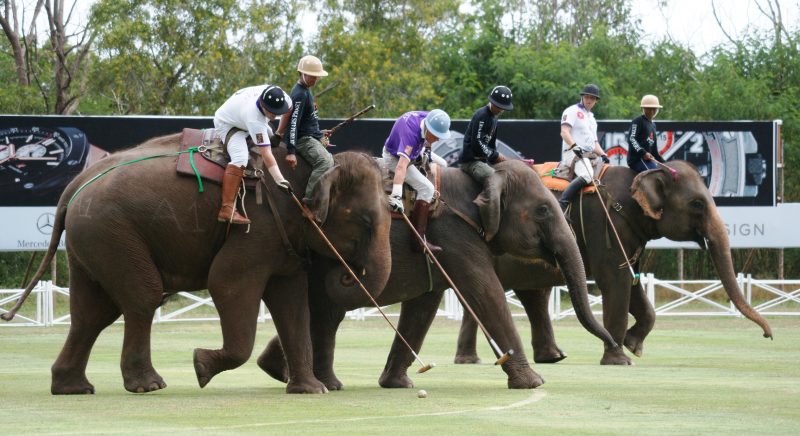 Olifantenpolo is bedacht door de aristocratische Engelsen die na hun bezetting van India in het land zijn achtergebleven. Waar in Nederland het paard voor de eg werd gespannen werden in India olifanten gebruikt. Het inzetten van olifanten voor het spelen van polo is dan eigenlijk ook niet meer dan logisch. De regels van olifantenpolo zijn gelijk aan die van de paardenpolo, al moet er een verschil worden onderkend in de definitie van gevaar. De massa van een olifant laat zich wat minder makkelijk stoppen en men is dan ook blij met de aanpassing van het reglement die het toelaat dat niet een maar twee personen plaats mogen nemen op een olifant. Een chauffeur en een achterbankzitter die de mallet mag proberen te hanteren. Een team bestaat wederom uit vier leden per team waarbij nu dus het paard is verruild voor een olifant en de mallets zijn verlengd om de grotere afstand tot de grond te kunnen overbruggen. Waar de paarden met een topsnelheid van ongeveer 55 km/u over de vlakten raasden, brengen de olifanten de spelers met een wat rustiger drafje naar de bal en de overkant van het veld. Ondermeer om deze reden is besloten het veld wat in te korten om toch nog voor het einde van de wedstrijd tot doelpunten te kunnen komen. In The World Elephant Polo Tournament draait het om de eer, maar het is gelukkig ook toegestaan ordinair te strijden voor de winst, zoals het bij sport behoort. Uiteraard wordt ieder verlies weer afgedaan met een gezellig hapje en drankje en het tonen van de nieuw verworven snuisterijen die niet duur genoeg konden zijn.