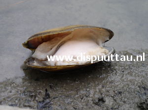 - Schraap de sluitspier van de onderschelp en draai de inhoud van de schelp even om.